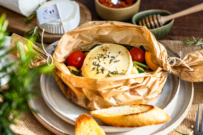 Quiche mit Lauch, Chabichou du Poitou AOP und Speck