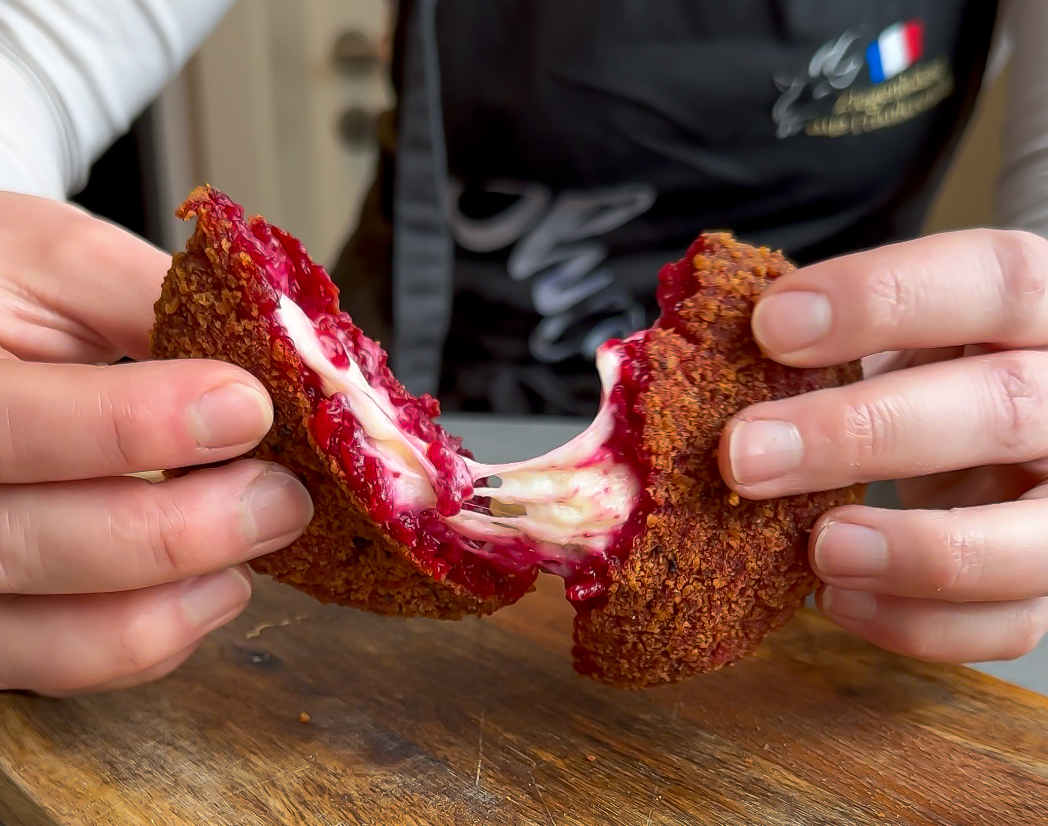 - 1 EL der Béchamel-Käse-Masse in die Mulde geben und den Arancino vorsichtig schließen. So verfahren, bis sämtlicher Risotto und Käsemasse aufgebraucht sind. Die Arancini anschließend in Pankomehl wälzen.
